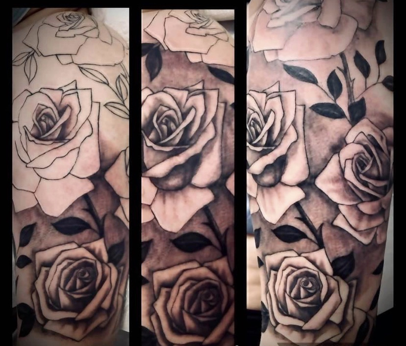 Stolz auf uns und das Ergebnis, begutachten wir gemeinsam das Werk noch ganz genau und optimieren bei Bedarf, bevor es mit einer Folie abgedeckt wird. Sauberkeit und Einhaltung der Pflegehinweise ist während des Heilungsprozesses ein Muss. Sollte in dieser Zeit, wider Erwarten, Farbe verloren gehen, melde Dich unbedingt und ungeniert zum Nachstechen.